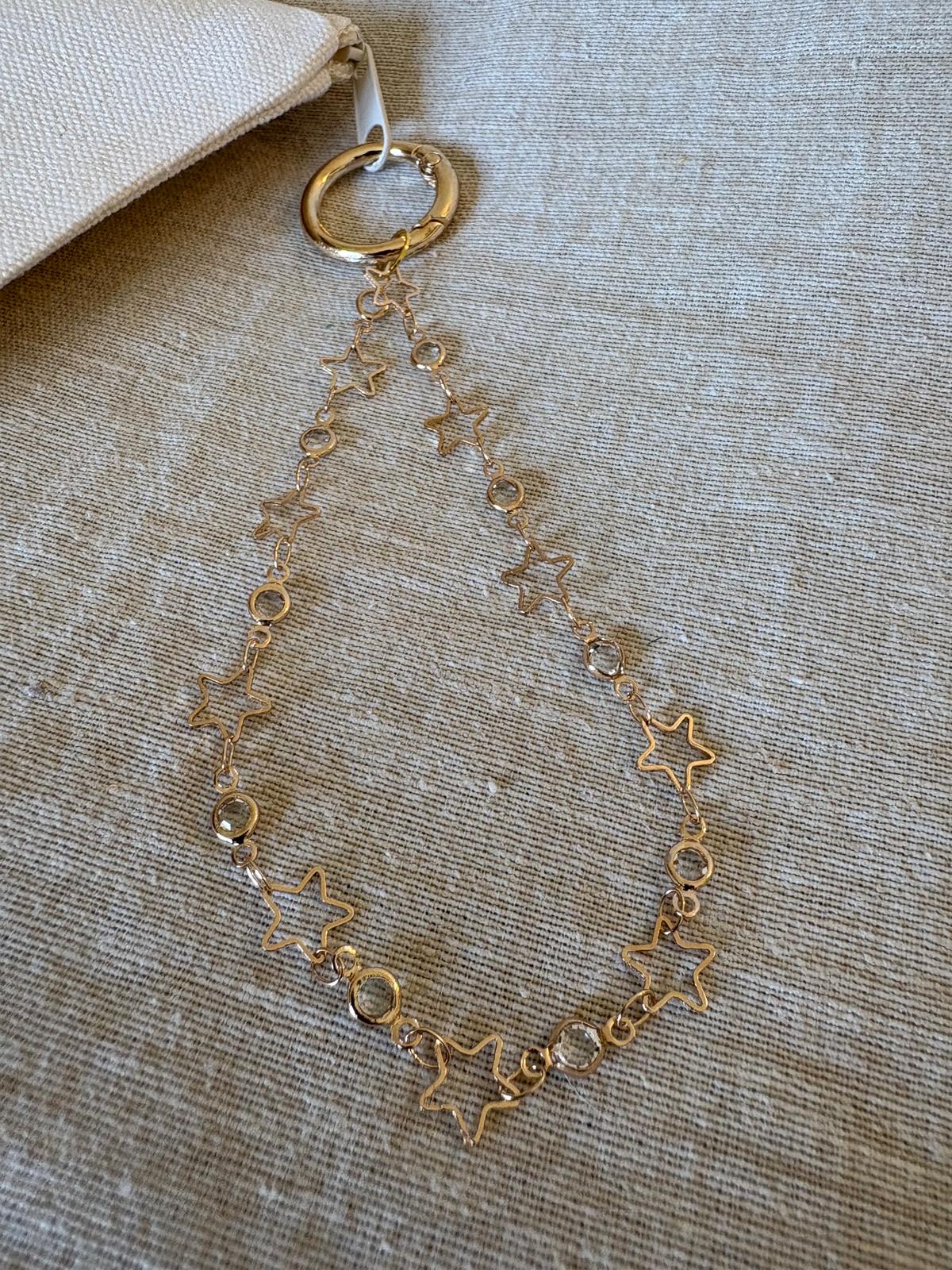 Impugnatura Gioiello: Un vero e proprio gioiello da polso! L'impugnatura è realizzata con una catena in acciaio inossidabile con placcatura in oro con dettagli di stelle e strass.